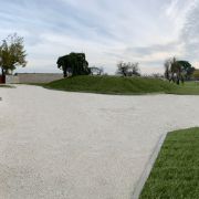 L’obiettivo dell’intervento ha compreso il recupero del muro di cinta in sasso esistente, la realizzazione di un nuovo tratto muro di cinta, nuovo accesso carrabile, area di sosta e di un percorso ciclo-pedonale.